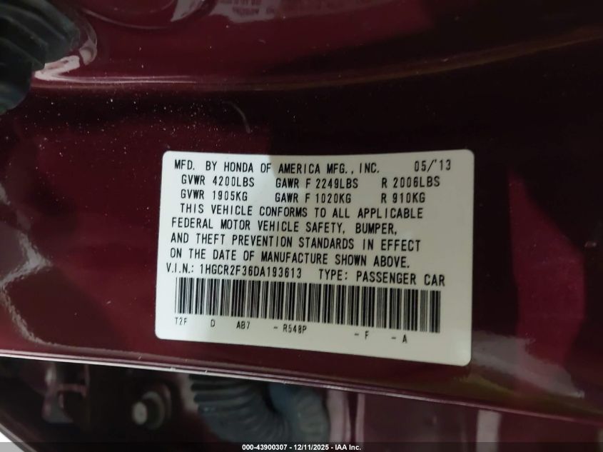 2013 HONDA ACCORD 2013 року Бензин, 2.4, Передний привод, vin - 1HGCR2F36DA193613 из США