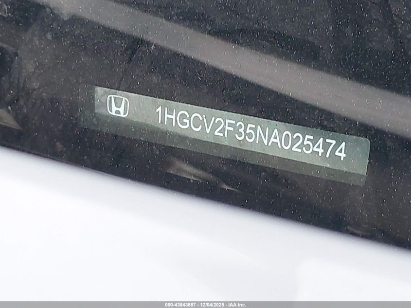 2022 HONDA ACCORD 2022 року Бензин, 2.0, Передний привод, vin - 1HGCV2F35NA025474 из США
