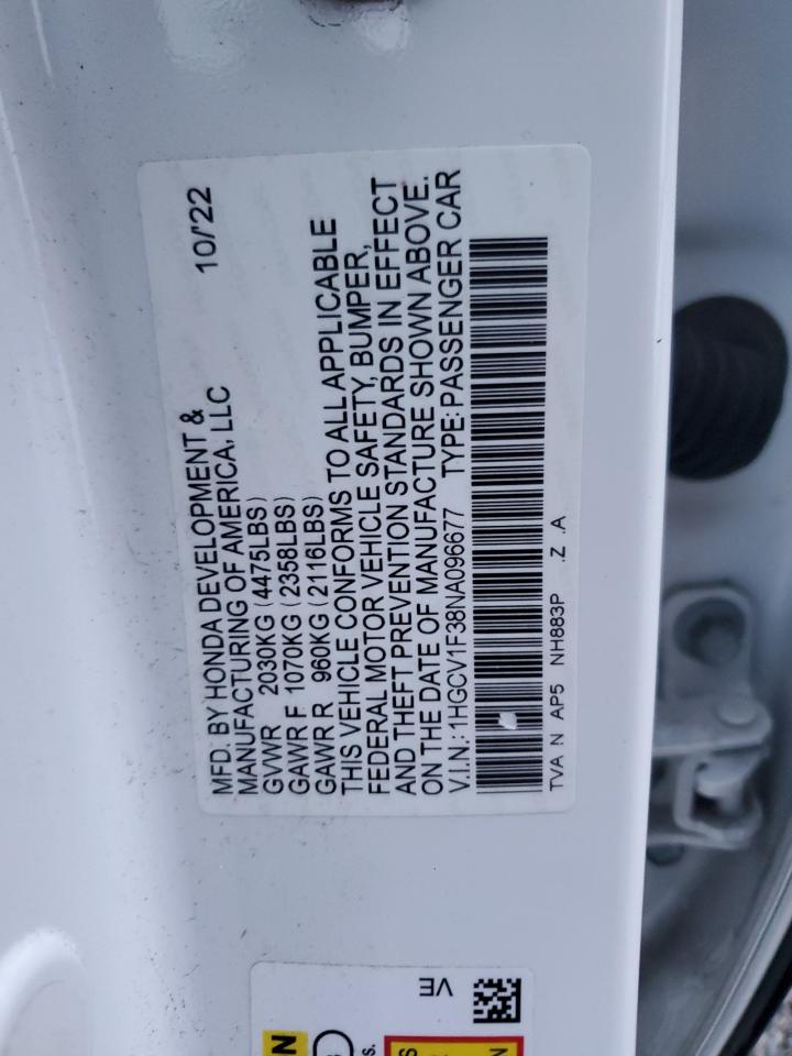 2022 HONDA ACCORD 2022 року Бензин, 1.5, , vin - 1HGCV1F38NA096677 из США