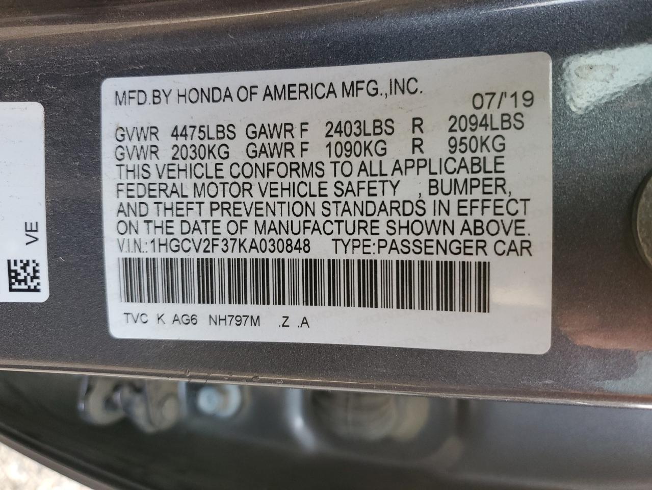 2019 HONDA ACCORD 2019 року Бензин, 2.0, , vin - 1HGCV2F37KA030848 из США