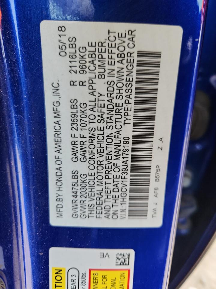 2018 HONDA ACCORD 2018 року Бензин, 1.5, , vin - 1HGCV1F39JA179190 из США