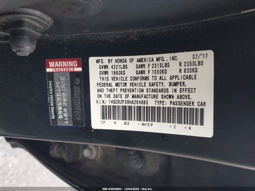 2017 HONDA ACCORD 2017 року Бензин, 2.4, Передний привод, vin - 1HGCR2F56HA264865 из США
