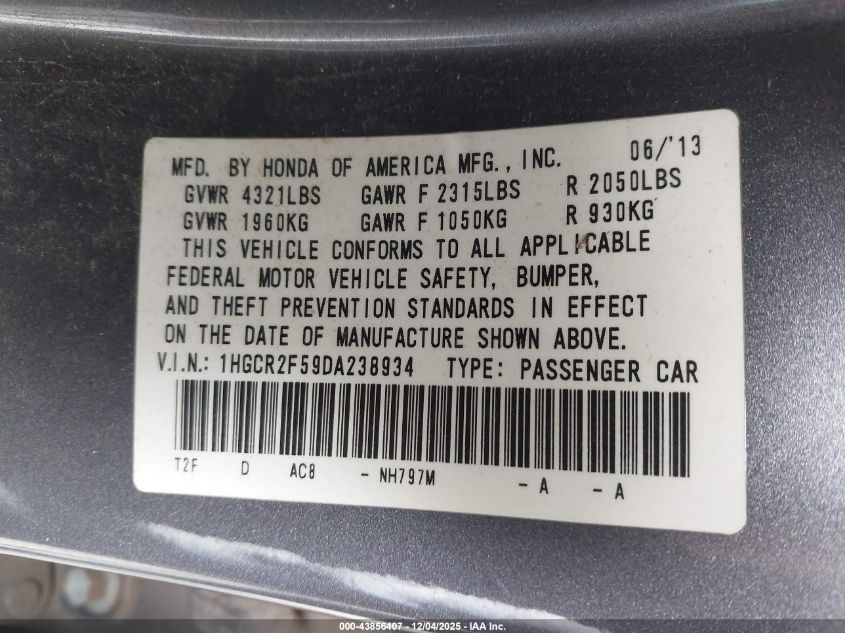 Цвет СерыйЦилиндры 4Привод Передний приводVIN 1HGCR2F59DA238934Состояние Заводится и едет (проверено)Повреждения Передняя или задняя AutoRIA