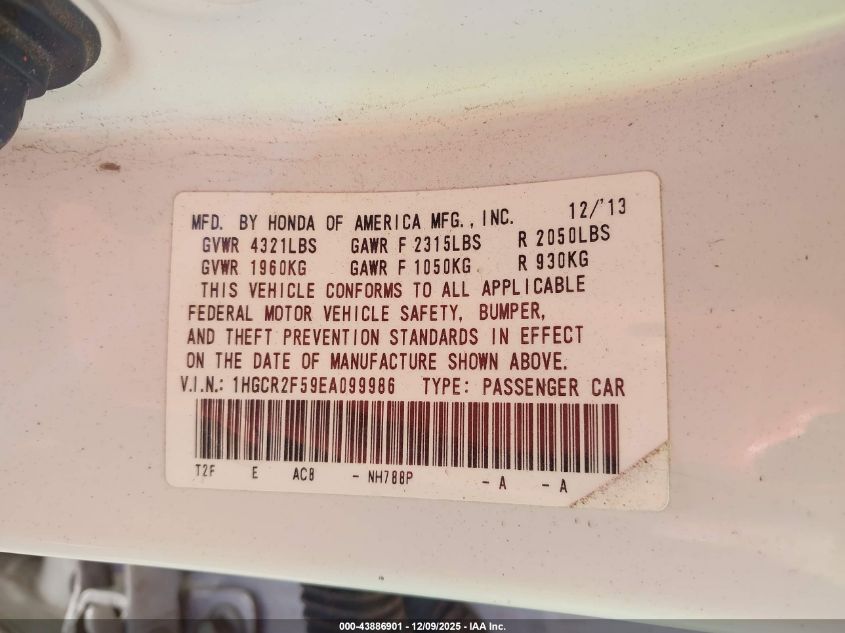 2014 HONDA ACCORD 2014 року Бензин, 2.4, Передний привод, vin - 1HGCR2F59EA099986 из США