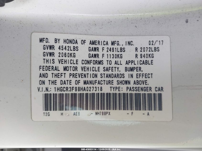2017 HONDA ACCORD 2017 року Бензин, 3.5, Передний привод, vin - 1HGCR3F98HA027318 из США