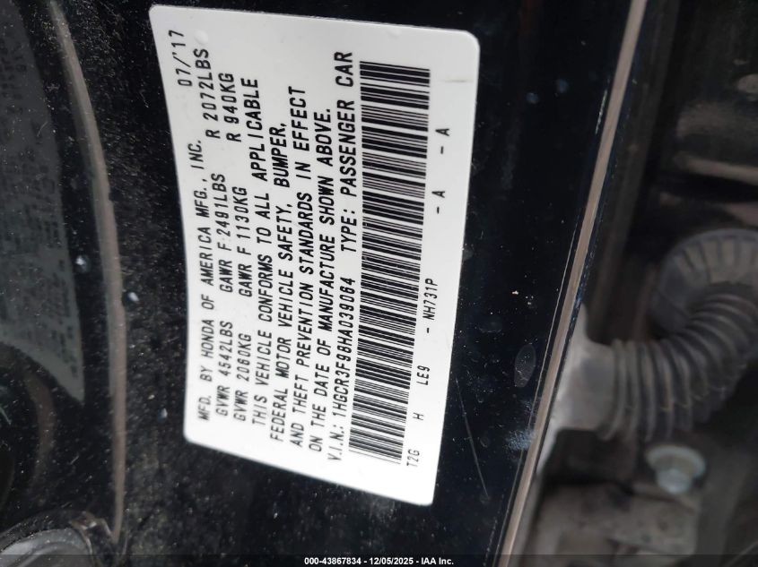 2017 HONDA ACCORD 2017 року Бензин, 3.5, Передний привод, vin - 1HGCR3F98HA039064 из США