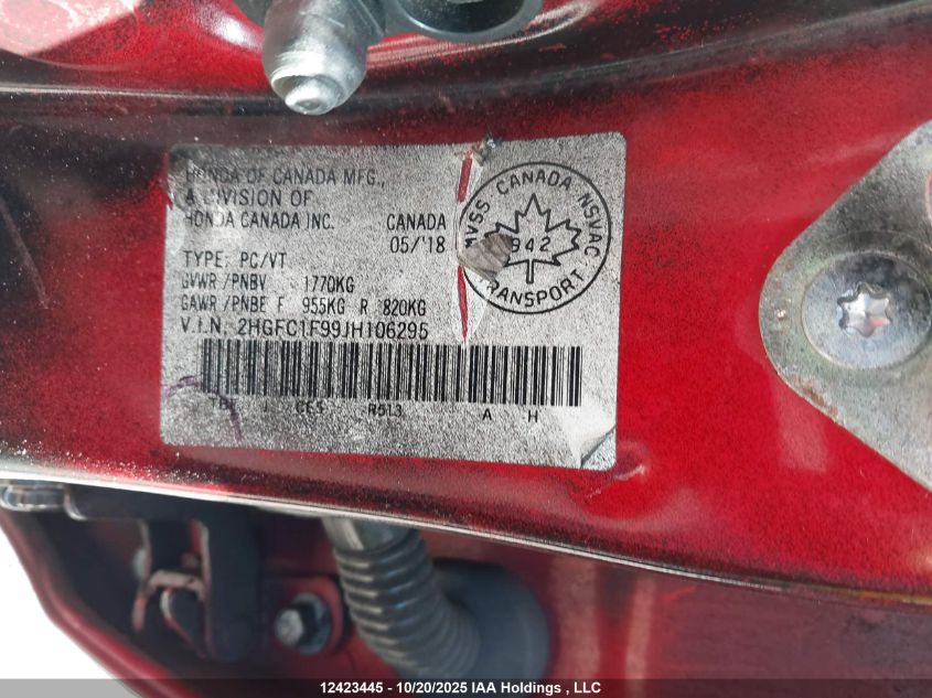 2018 HONDA CIVIC 2018 року Бензин, , Передний привод, vin - 2HGFC1F99JH106295 из США