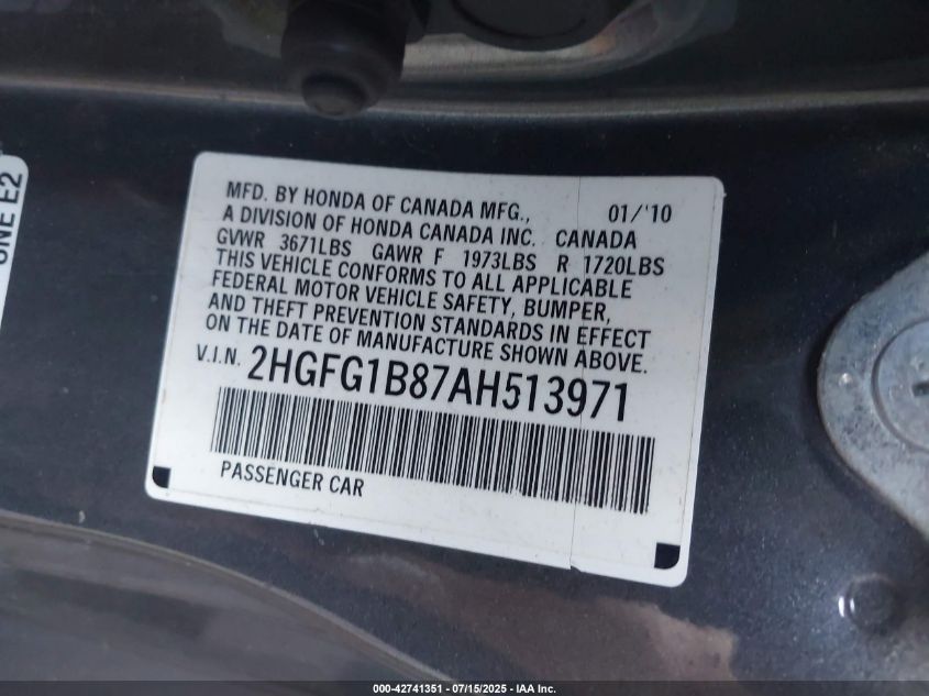 2010 HONDA CIVIC 2010 року Бензин, 1.8, Передний привод, vin - 2HGFG1B87AH513971 из США