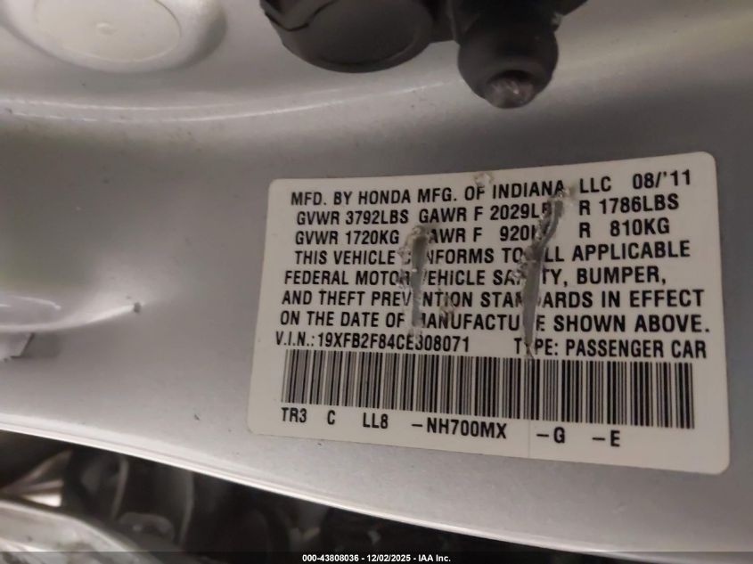 Цвет СеребряныйЦилиндры 4Привод Передний приводVIN 19XFB2F84CE308071Состояние Заводится и едет (проверено)Повреждения Левая сторона AutoRIA