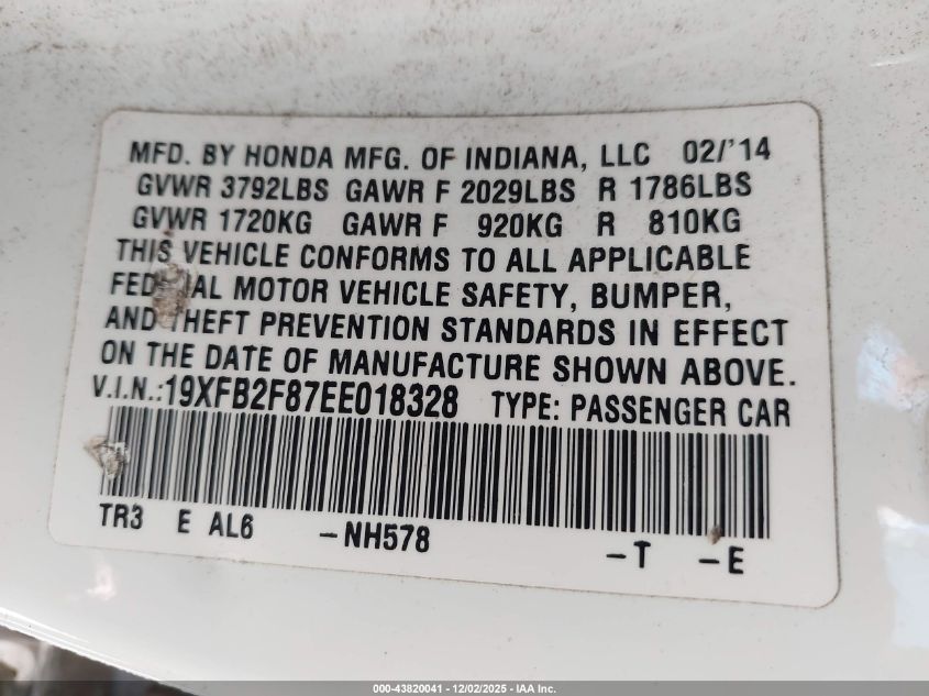 2014 HONDA CIVIC 2014 року Бензин, 1.8, Передний привод, vin - 19XFB2F87EE018328 из США