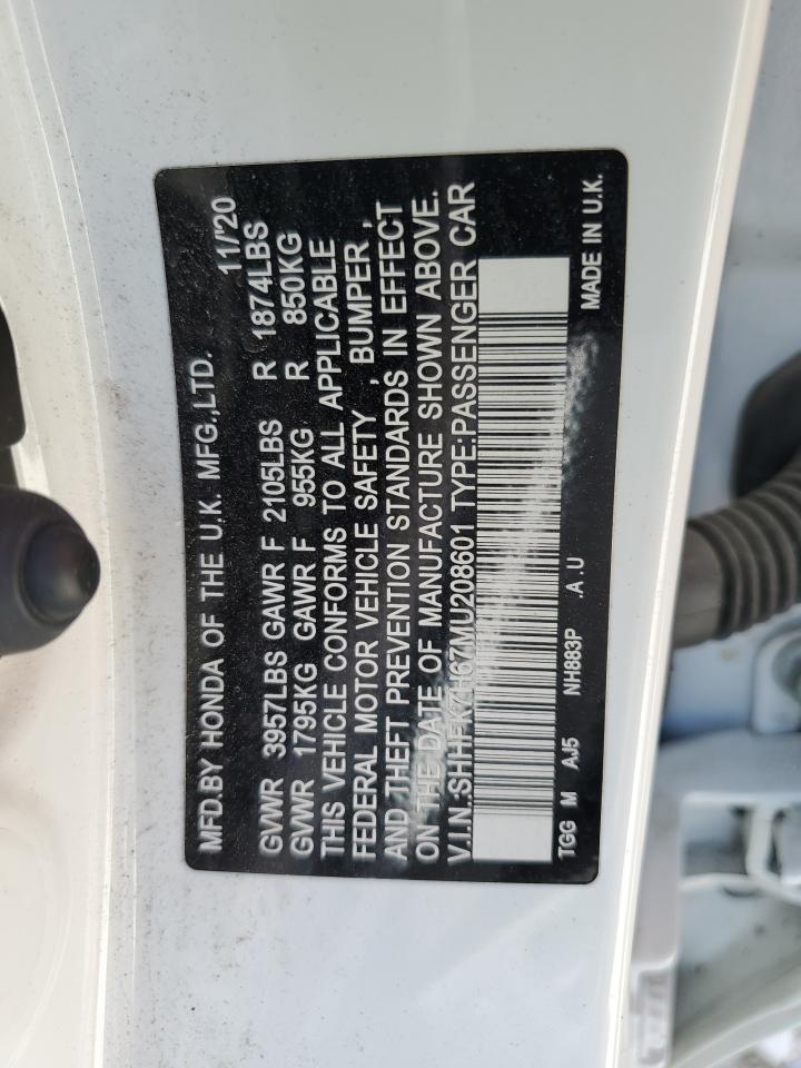 2021 HONDA CIVIC 2021 року Бензин, 1.5, , vin - SHHFK7H67MU208601 из США