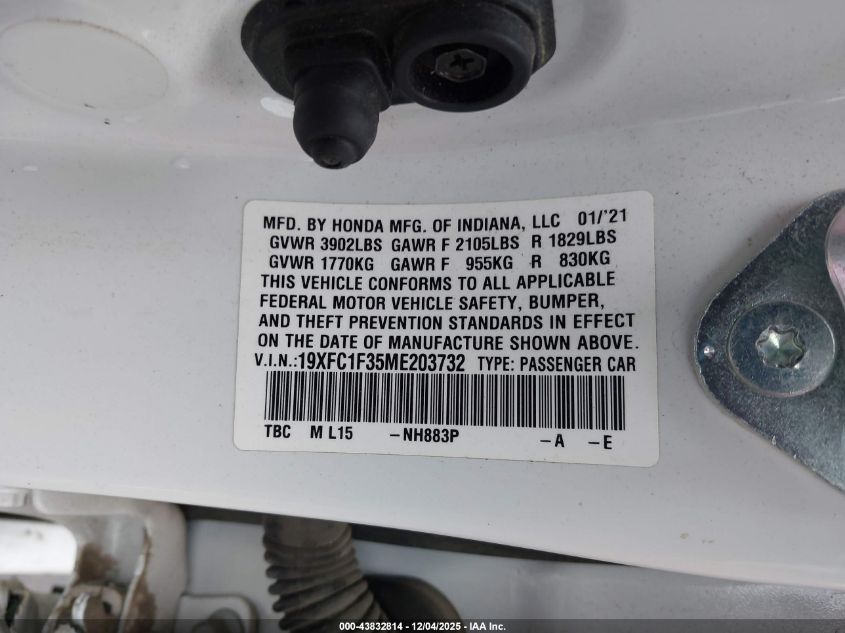 2021 HONDA CIVIC 2021 року Бензин, 1.5, Передний привод, vin - 19XFC1F35ME203732 из США