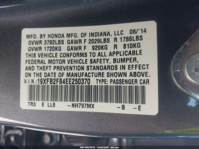2014 HONDA CIVIC 2014 року Бензин, 1.8, Передний привод, vin - 19XFB2F84EE250370 из США