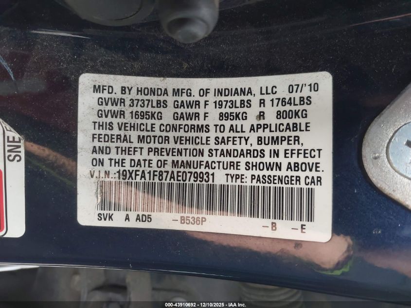 2010 HONDA CIVIC VP