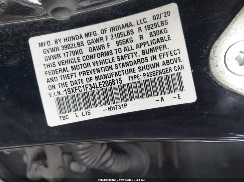 2020 HONDA CIVIC 2020 року Бензин, 1.5, Передний привод, vin - 19XFC1F34LE206815 из США