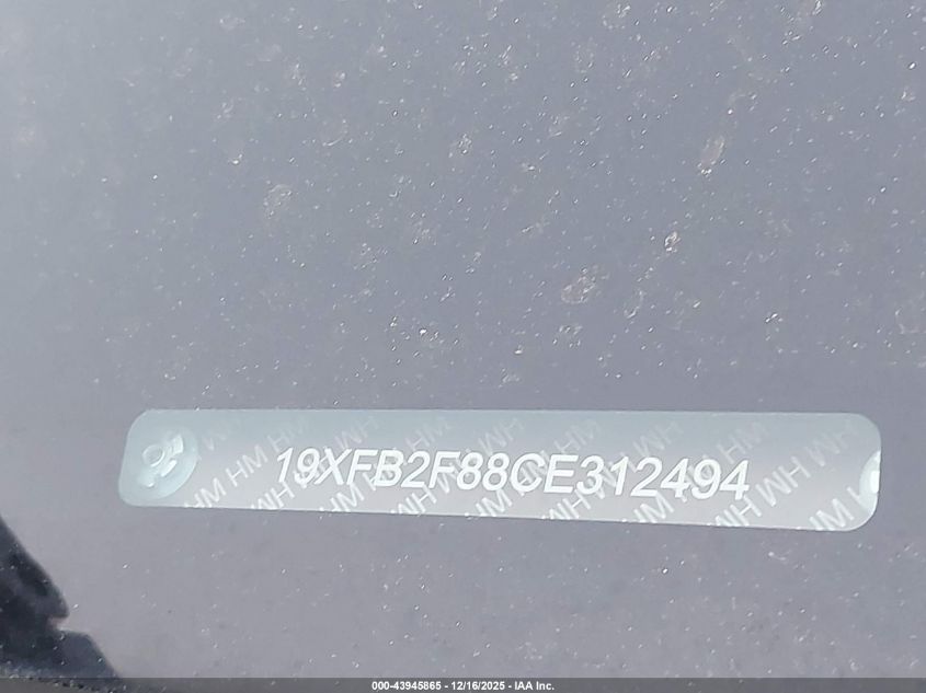 2012 HONDA CIVIC 2012 року Бензин, 1.8, Передний привод, vin - 19XFB2F88CE312494 из США
