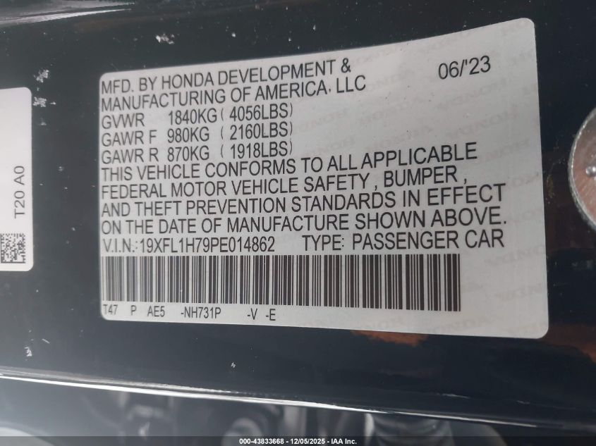 2023 HONDA CIVIC 2023 року Бензин, 1.5, Передний привод, vin - 19XFL1H79PE014862 из США