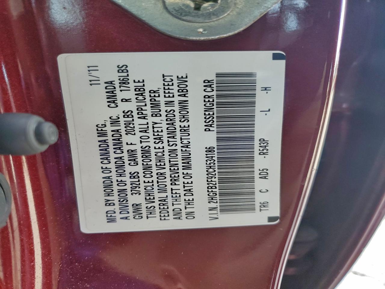 2012 HONDA CIVIC 2012 року Бензин, 1.8, , vin - 2HGFB2F92CH534186 из США