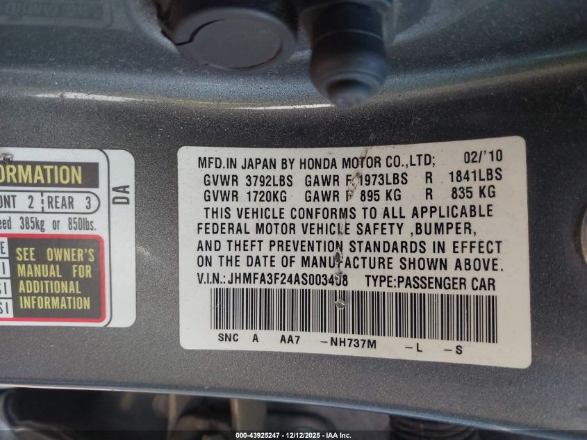 2010 HONDA CIVIC VP