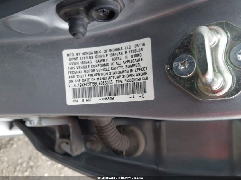2016 HONDA CIVIC 2016 року Бензин, 2.0, Передний привод, vin - 19XFC2F56GE063055 из США