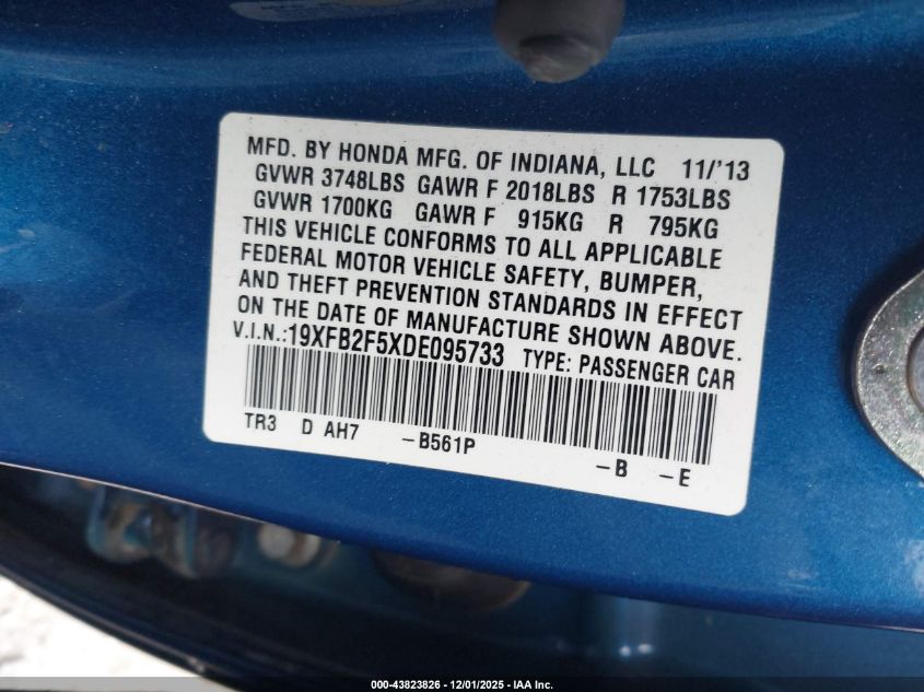 2013 HONDA CIVIC 2013 року Бензин, 1.8, Передний привод, vin - 19XFB2F5XDE095733 из США