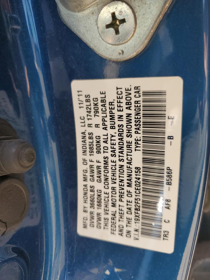 2012 HONDA CIVIC 2012 року Бензин, 1.8, , vin - 19XFB2F51CE024158 из США