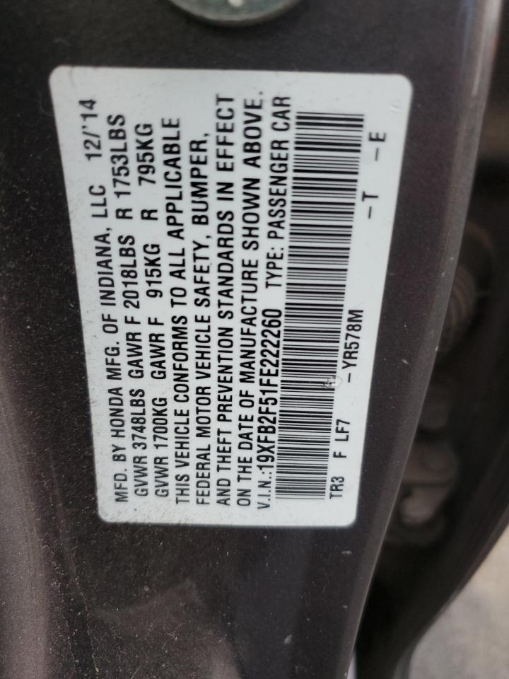 2015 HONDA CIVIC 2015 року Бензин, 1.8, , vin - 19XFB2F51FE222260 из США
