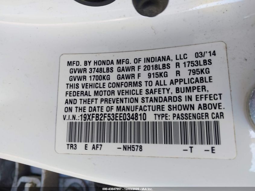 Цвет БелыйЦилиндры 4Привод Передний приводVIN 19XFB2F53EE034810Состояние СтационарноПовреждения Передняя или задняя AutoRIA