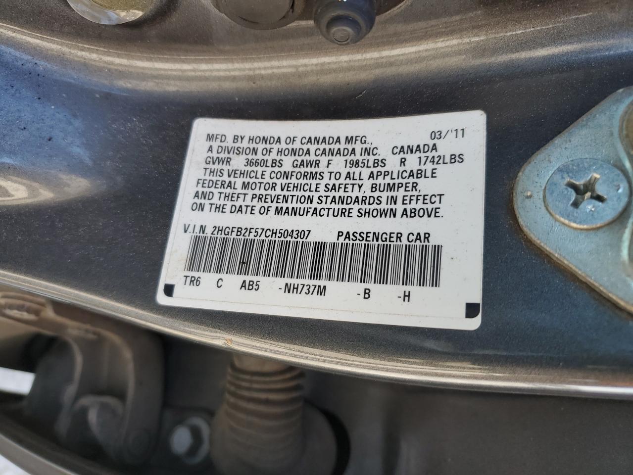2012 HONDA CIVIC 2012 року Бензин, 1.8, , vin - 2HGFB2F57CH504307 из США