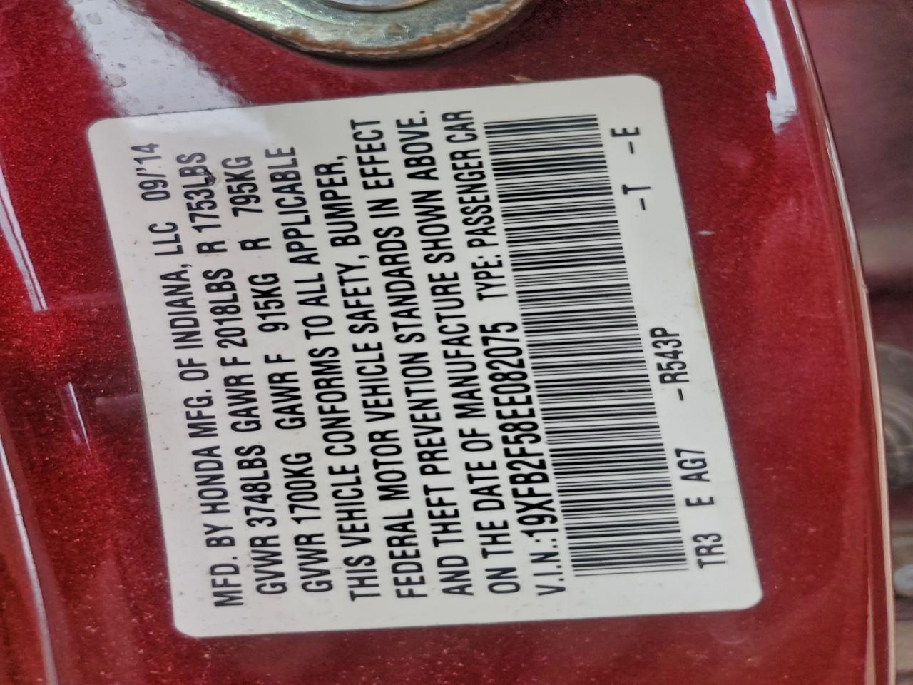 2014 HONDA CIVIC 2014 року Бензин, 1.8, , vin - 19XFB2F58EE082075 из США