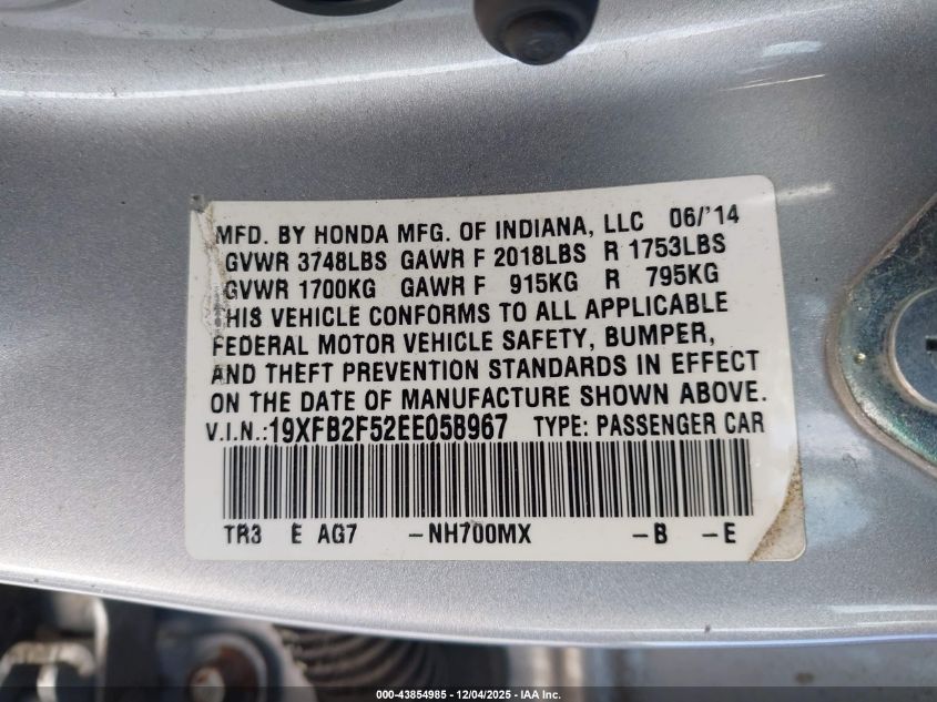 Цвет СеребряныйЦилиндры 4Привод Передний приводVIN 19XFB2F52EE058967Состояние СтационарноПовреждения Правая сторона AutoRIA