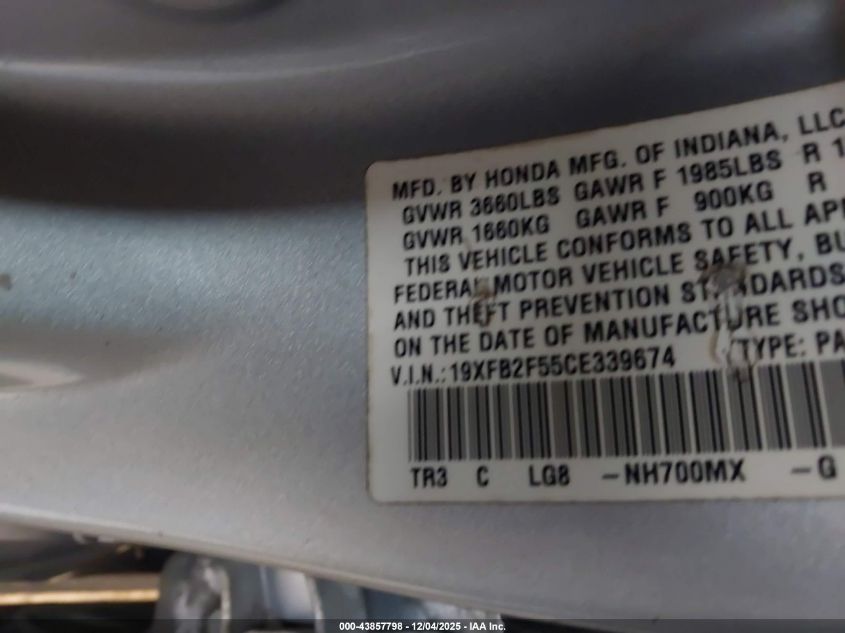 2012 HONDA CIVIC 2012 року Бензин, 1.8, Передний привод, vin - 19XFB2F55CE339674 из США