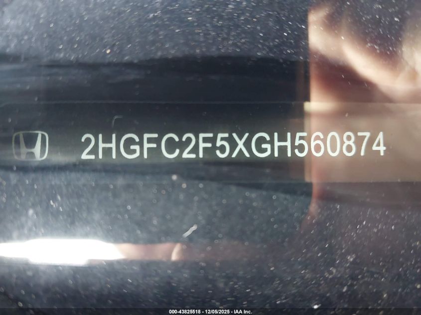 2016 HONDA CIVIC 2016 року Бензин, 2.0, Передний привод, vin - 2HGFC2F5XGH560874 из США
