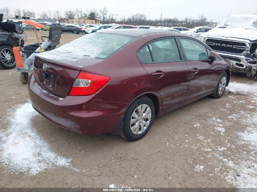 2012 HONDA CIVIC 2012 року Бензин, 1.8, Передний привод, vin - 19XFB2F56CE051694 из США