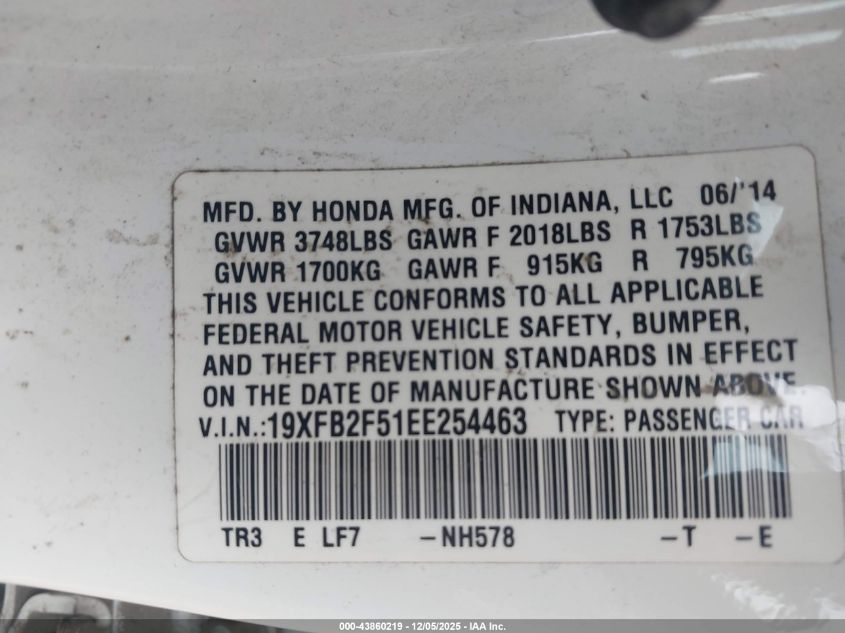Цвет БелыйЦилиндры 4Привод Передний приводVIN 19XFB2F51EE254463Состояние Заводится и едет (проверено)Повреждения Передняя или задняя AutoRIA