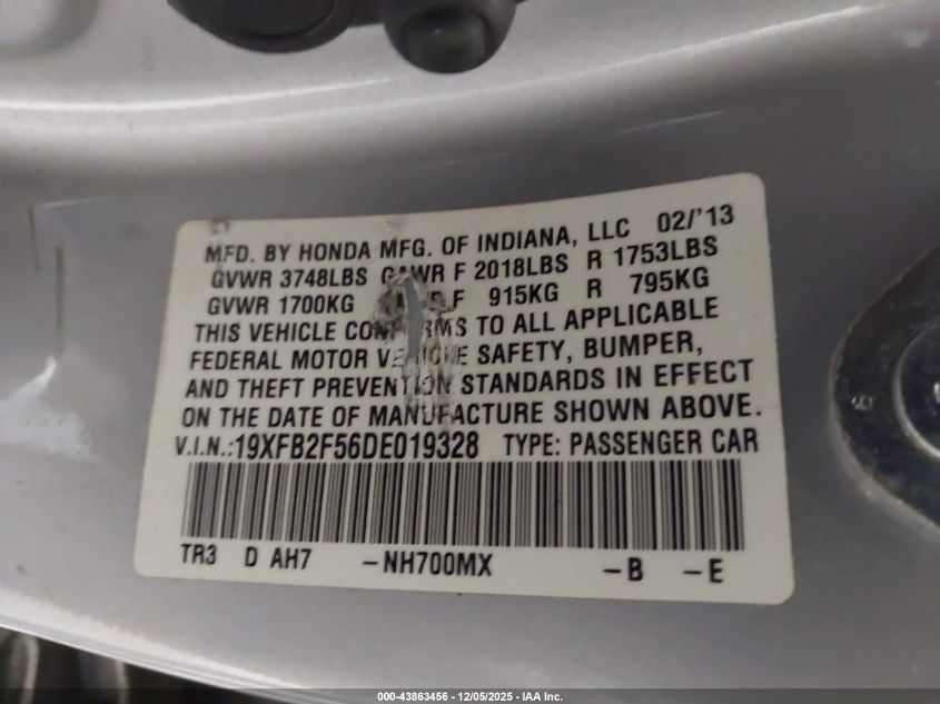2013 HONDA CIVIC 2013 року Бензин, 1.8, Передний привод, vin - 19XFB2F56DE019328 из США