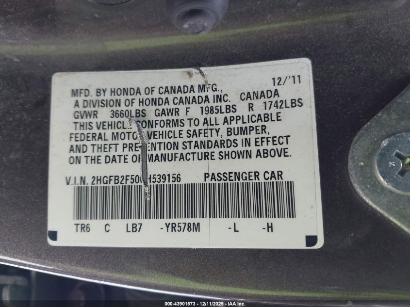 2012 HONDA CIVIC 2012 року Бензин, 1.8, Передний привод, vin - 2HGFB2F50CH539156 из США