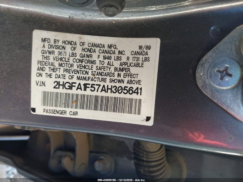 2010 HONDA CIVIC 2010 року Бензин, 1.8, Передний привод, vin - 2HGFA1F57AH305641 из США