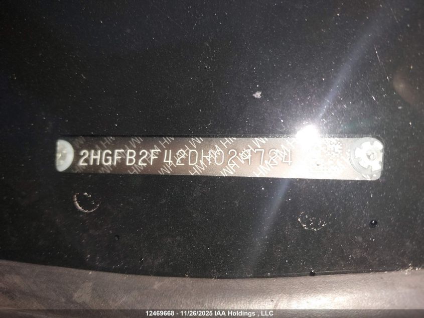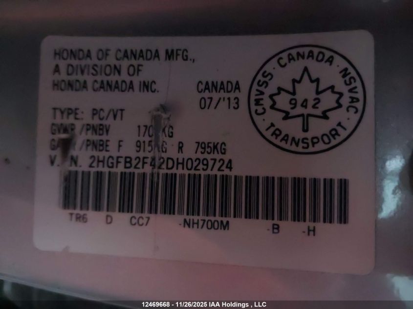 2013 HONDA CIVIC 2013 року Бензин, , Передний привод, vin - 2HGFB2F42DH029724 из США