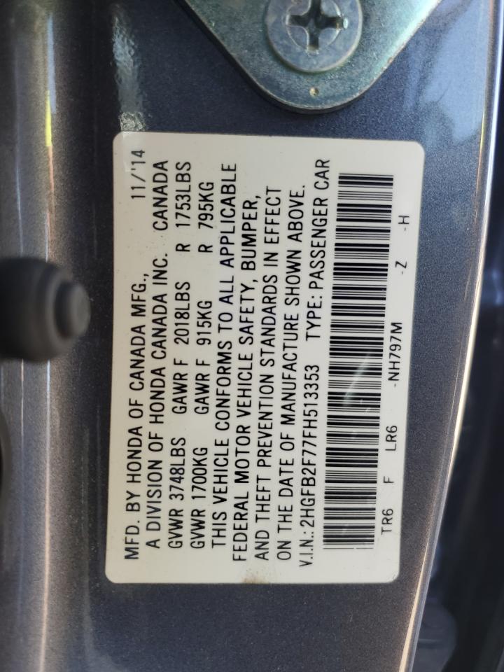 2015 HONDA CIVIC 2015 року Бензин, 1.8, , vin - 2HGFB2F77FH513353 из США