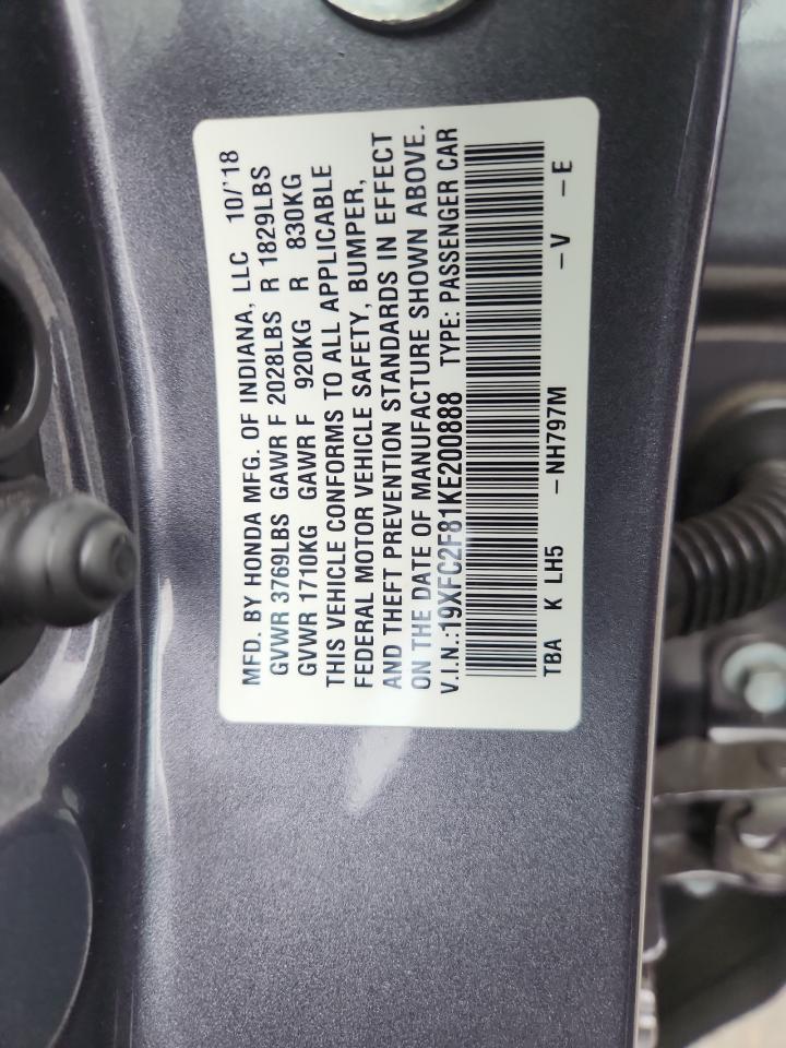2019 HONDA CIVIC 2019 року Бензин, 2.0, , vin - 19XFC2F81KE200888 из США