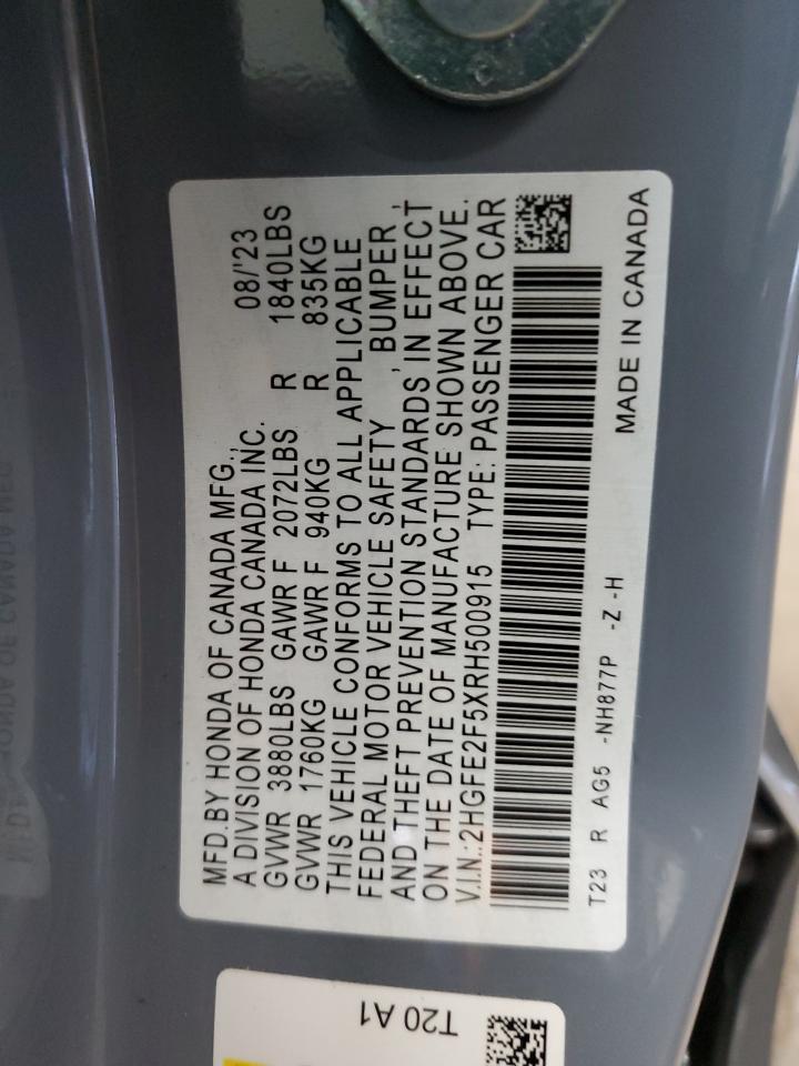 2024 HONDA CIVIC 2024 року Бензин, 2.0, , vin - 2HGFE2F5XRH500915 из США