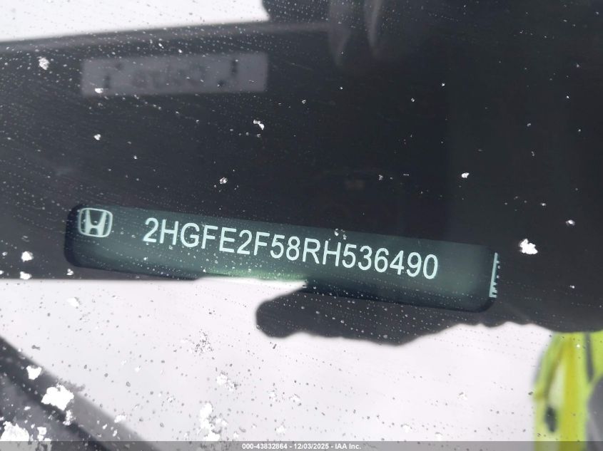 2024 HONDA CIVIC 2024 року Бензин, 2.0, Передний привод, vin - 2HGFE2F58RH536490 из США