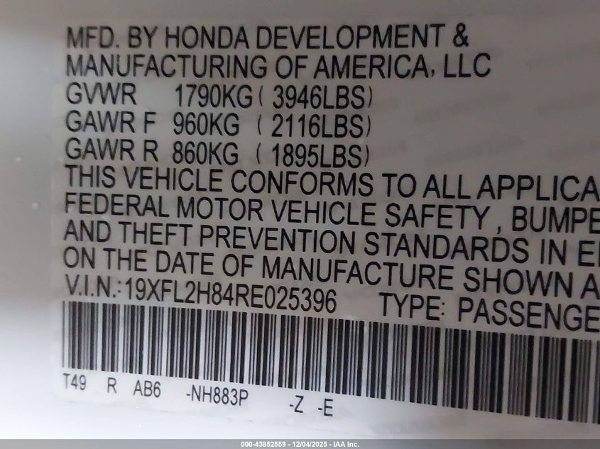 Цвет БелыйЦилиндры 4Привод Передний приводVIN 19XFL2H84RE025396Состояние Заводится и едет (проверено)Повреждения Передняя правая AutoRIA