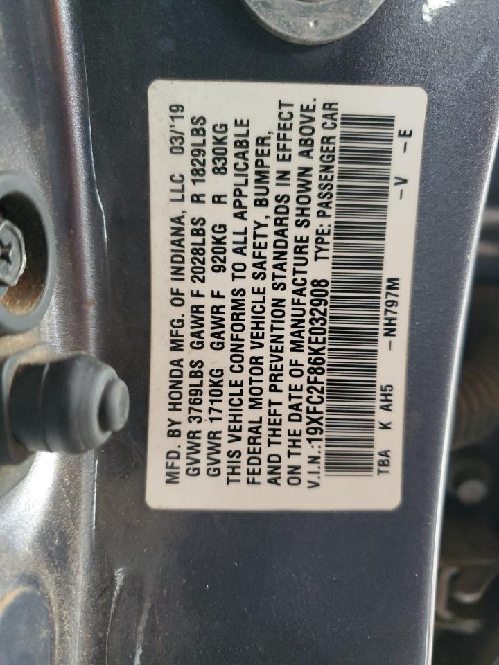 2019 HONDA CIVIC 2019 року Бензин, 2.0, , vin - 19XFC2F86KE032908 из США