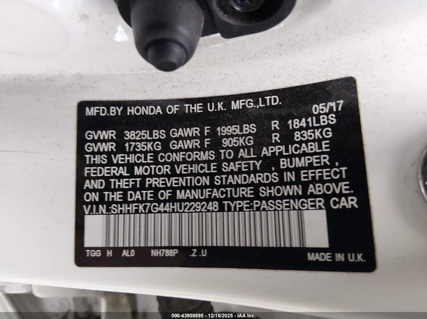 2017 HONDA CIVIC 2017 року Бензин, 1.5, Передний привод, vin - SHHFK7G44HU229248 из США