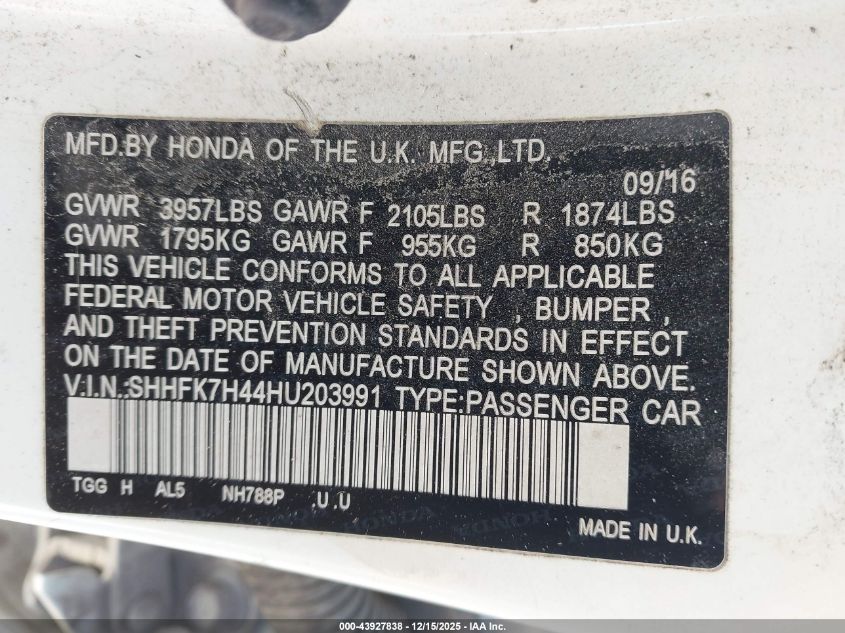 2017 HONDA CIVIC 2017 року Бензин, 1.5, Передний привод, vin - SHHFK7H44HU203991 из США