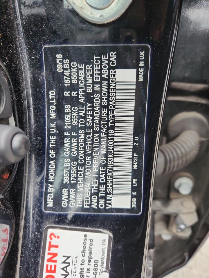 2019 HONDA CIVIC 2019 року Бензин, 1.5, , vin - SHHFK7H93KU400119 из США