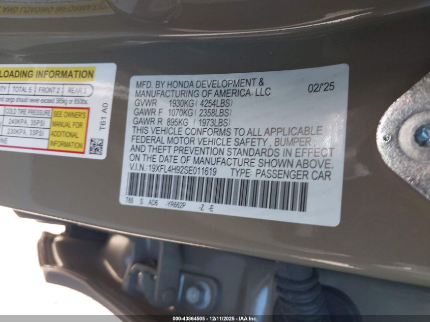 2025 HONDA CIVIC 2025 року Гибрид, 2.0, Передний привод, vin - 19XFL4H92SE011619 из США
