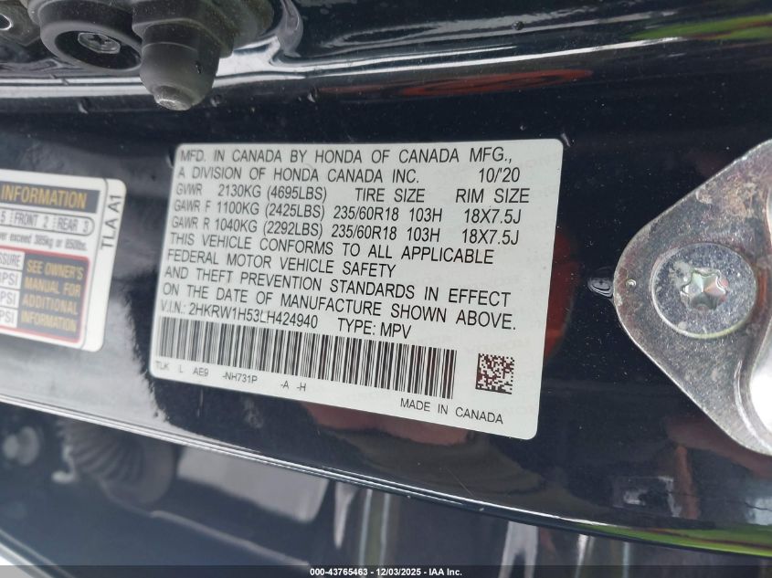 2020 HONDA CR-V 2020 року Бензин, 1.5, Передний привод, vin - 2HKRW1H53LH424940 из США